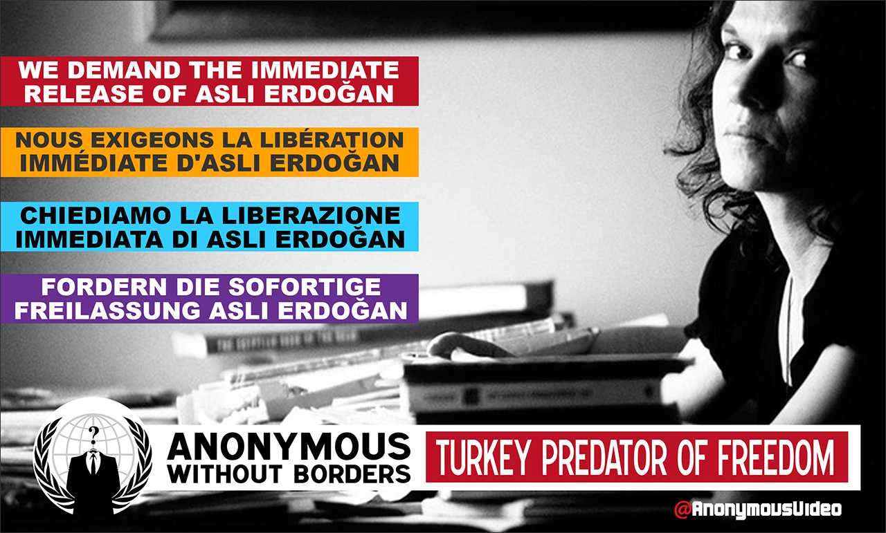 Ana sayfa Anonymous Türkiye Aslı Erdogan derhal serbest bırakılsın