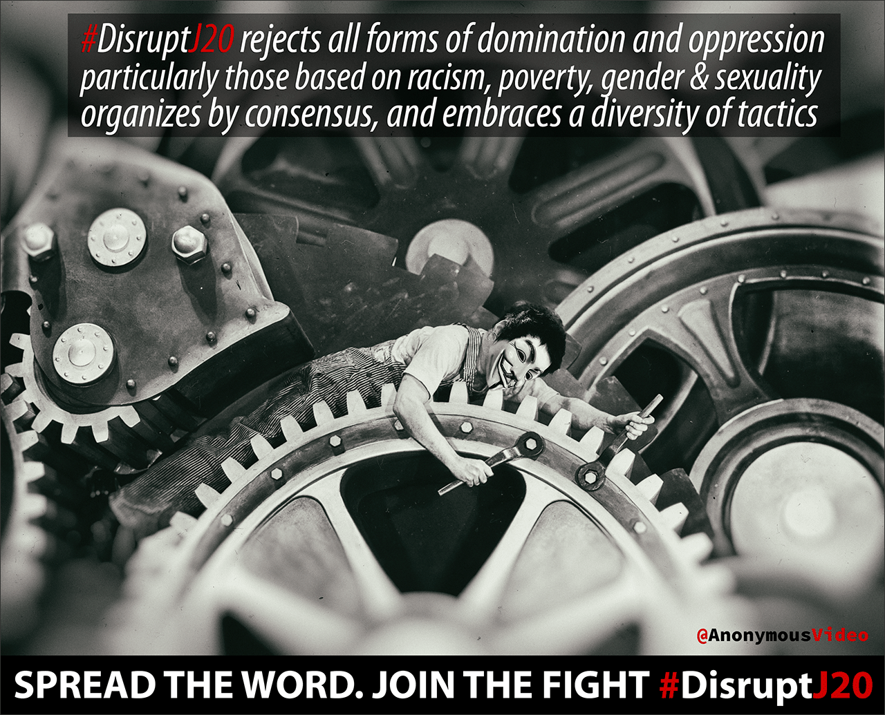 — Spread the word. Join the fight. #DisruptJ20