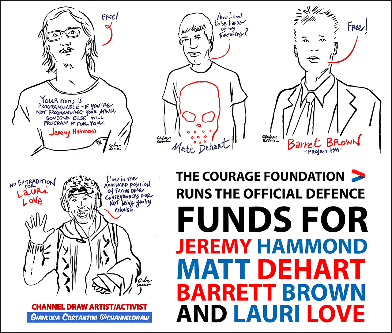 Gianluca has an array of material about the Kurdish people and other groups resisting in Turkey among other things, as well as strips in support of Allepo, Keywan Karimi, Julian Assange, Chelsea Manning and the #FreeAnons: Jeremy Hammond, Matt DeHart, Barrett Brown, Martin Gottesfeld, Lauri Love.